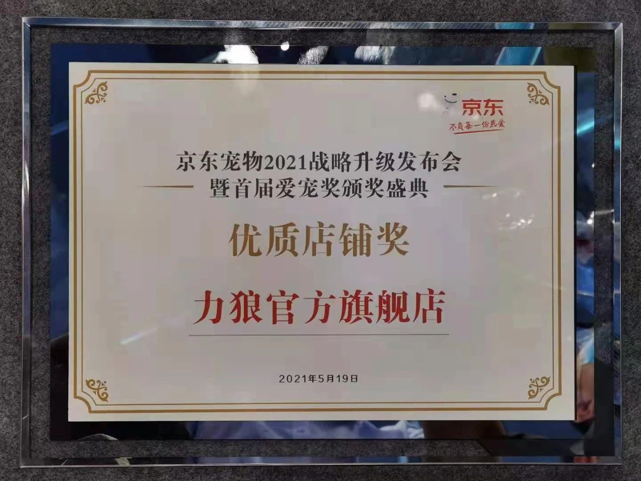 展會(huì)同期,在京東寵物2021年戰(zhàn)略升級(jí)發(fā)布會(huì)暨首屆“愛(ài)寵獎(jiǎng)”頒獎(jiǎng)盛典上,我公司力狼官方旗艦店榮獲“優(yōu)質(zhì)店鋪獎(jiǎng)”,再次獲得了行業(yè)同仁的認(rèn)可。